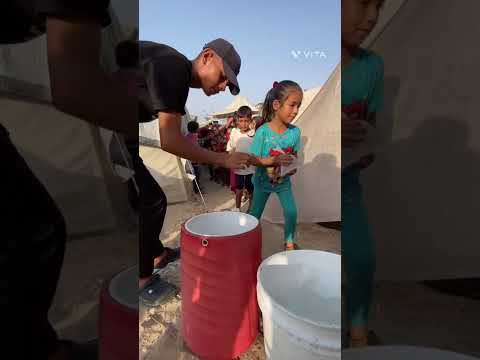 On August 13, 2025, our team member Sister Heba in Gaza distributed packets of cold water in the summer heat.